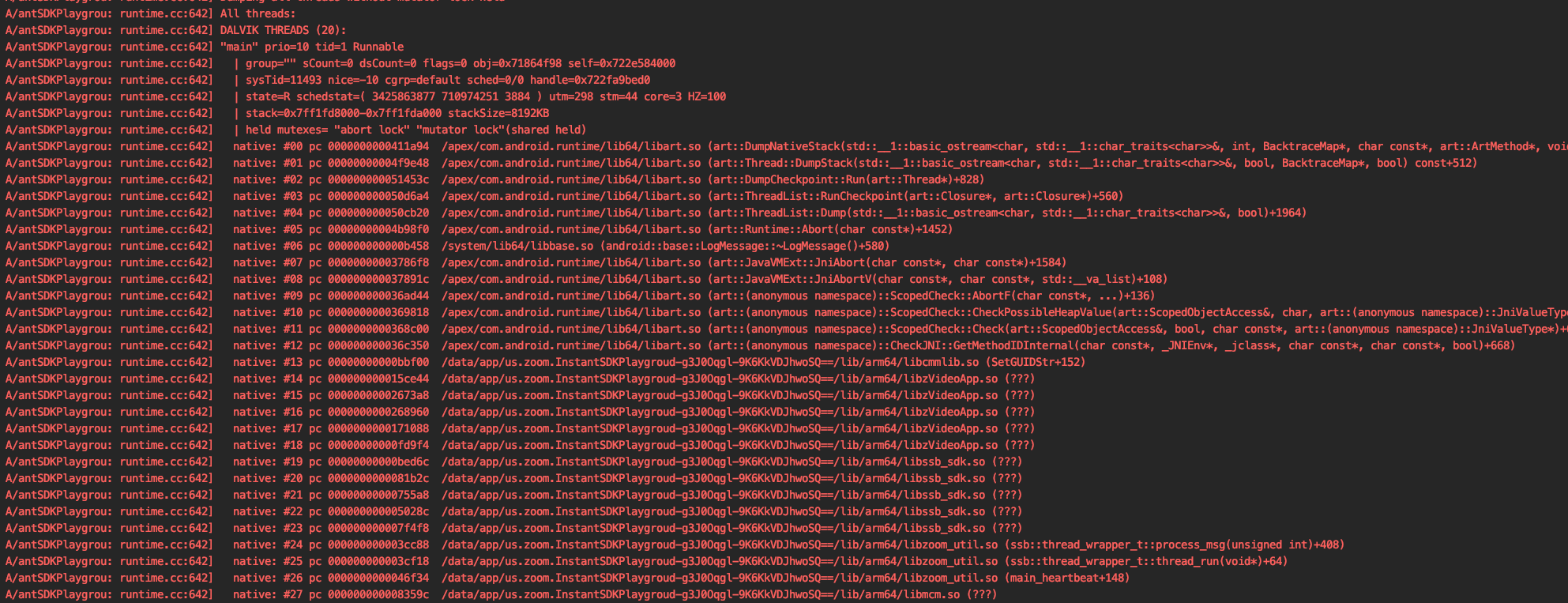 A/antSDKPlaygrou: java_vm_ext.cc:577] at void us.zoom.internal.SDKEngine.heartBeat() ((null):-1)