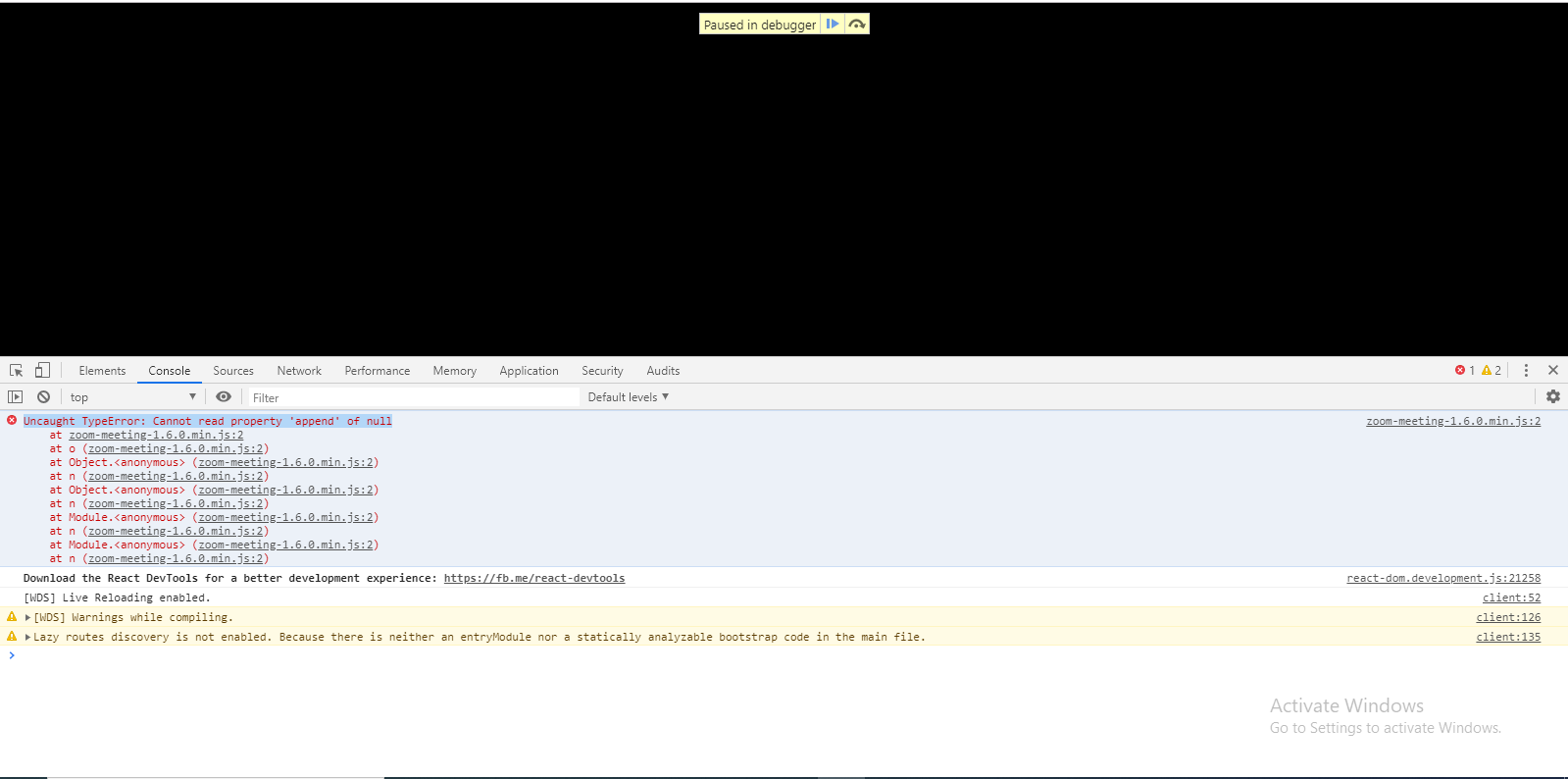 However post integration, it’s found that the Zoom SDK itself gets initiated creating a black screen over the existing angular application.