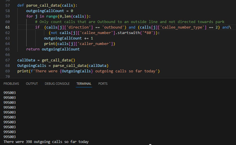 I have an application that downloads all calls for the day using GET /phone/call_logs then parses the calls and calculates various things including outgoing call count and total call time by extension.