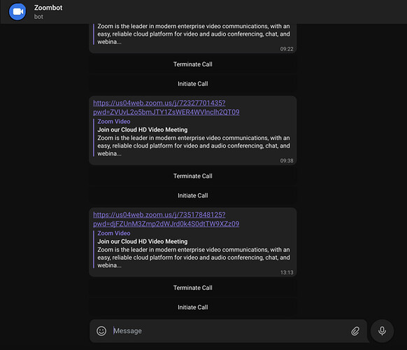 https://support.zoom.us/hc/en-us/articles/115005390806-Workplace-Zoom-Bot#:~:text=Enter%20the%20appropriate%20%40zoom%20command,topic%2C%20or%20join%20a%20meeting.&text=When%20the%20meeting%20ends%2C%20the,meeting%20is%20recorded%20in%20cloud).