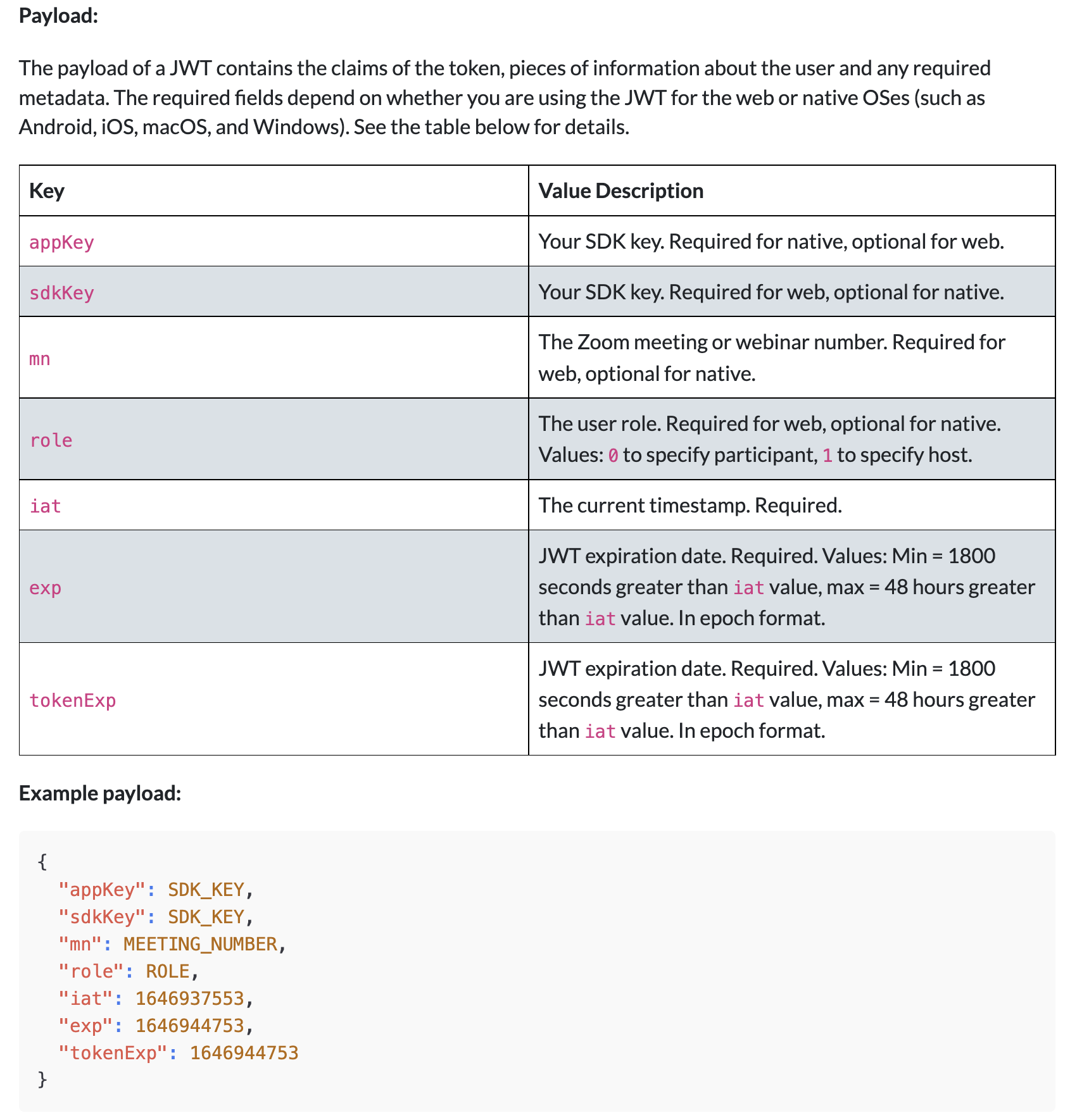 public string GenerateSdkJwtToken(string apiKey, string apiSecret, string meetingNumber, int role)