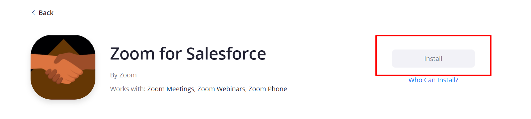 I’m not able to install Zoom for Salesforce app from marketplace the install button isn’t active it’s grey out.
