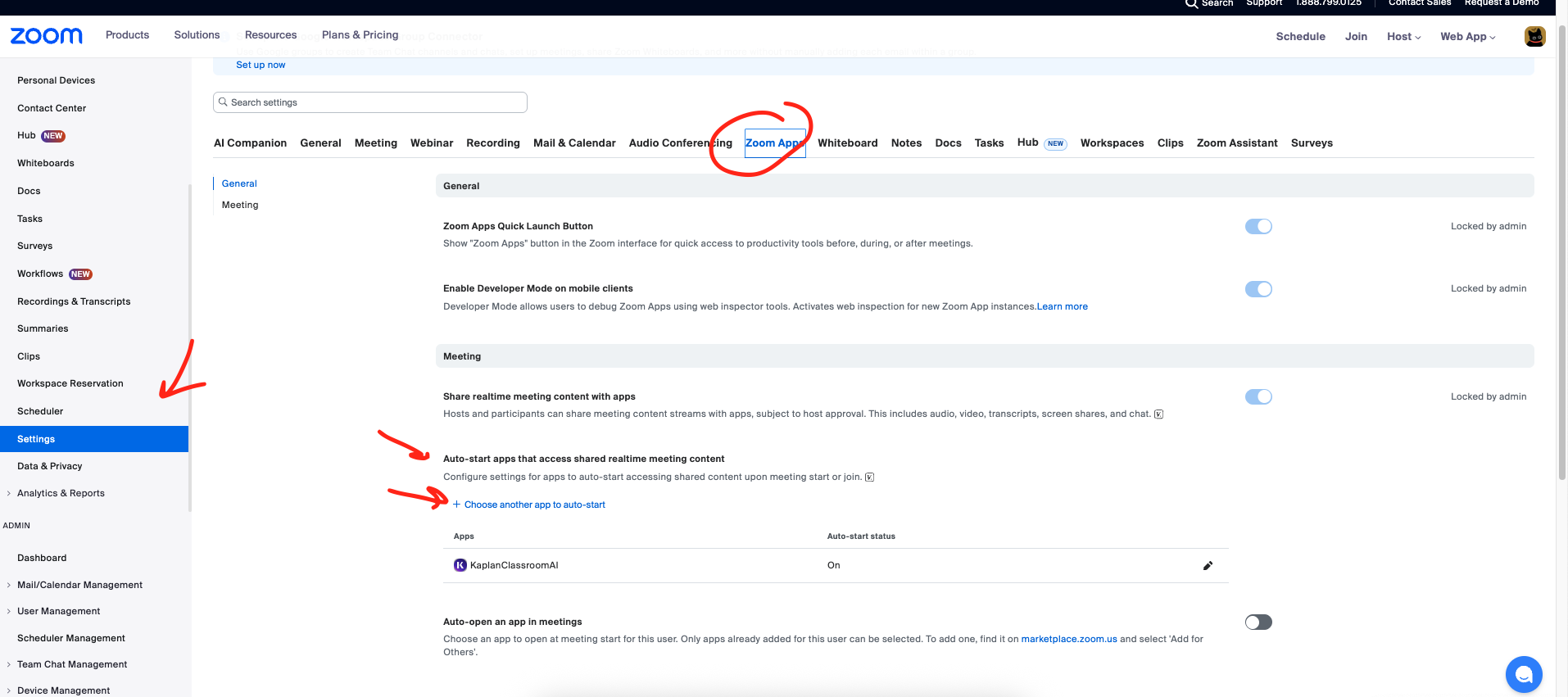 After adding it, I can’t find the app I want to test in the Zoom Apps section of User Settings, under the “Choose an app to auto-start” function.