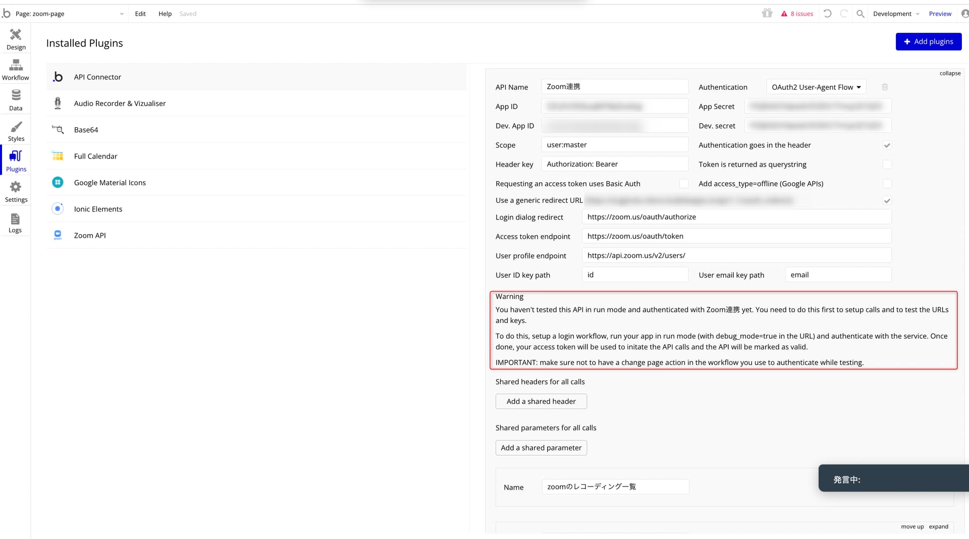 I am trying to connect my bubble app to Zoom with OAuth2, however it keeps emitting some errors.