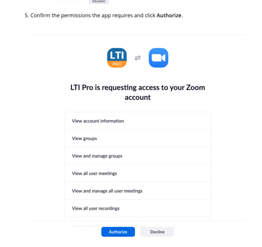 I’m trying to understand the level of permissions LTI Pro App would require to access Zoom Account so that I can setup accordindly.