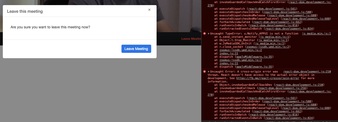 The reason is because we are building a dynamic single page application where the zoom client is one of many components in view. Unlike Zoom, the end of a video conference does not signify the end of a flow, so it wouldn’t be appropriate to send the user to some other landing page.
