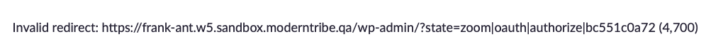 I am attempting to create an oauth app using events calendar pro. I input my redirect url, and I receive this error: