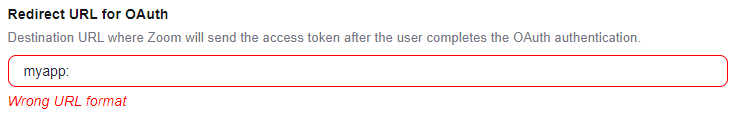 “Redirect URL for OAuth” in “SDK OAuth credentials” shows “Wrong URL format” when trying to set a custom schema.