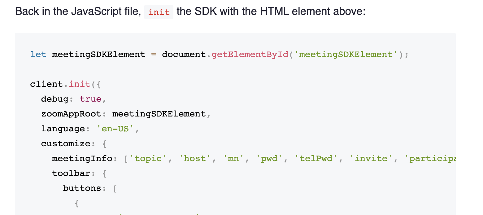 Thank you for reaching out to the Zoom Developer Forum. If you want to resize that element, you would effectively apply styles to the div where you’ve attached that element. In our example, you would be styling #meetingSDKElemenent