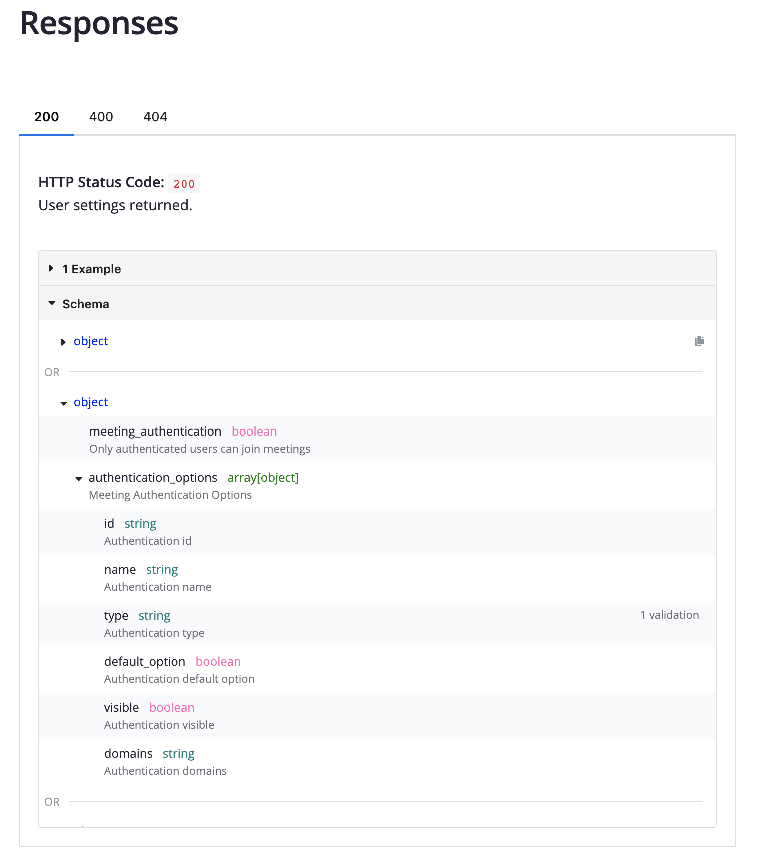 Yes, I can get the authentication_option from this endpoint if we enable the meeting authentication under the user setting. However, if user hasn’t enabled this option, we cannot assign authentication_option by using create meeting API. I could do this before, but I cannot now.