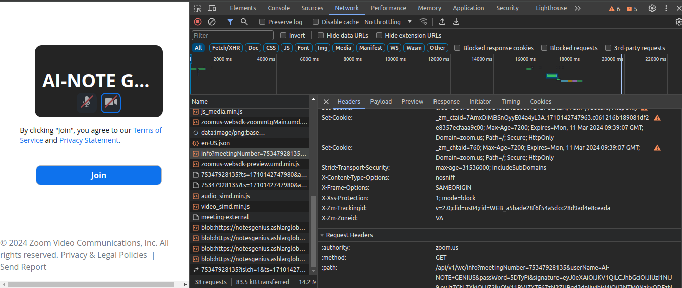 startMeeting(data.signature, meetingNumber, passWord, userName);