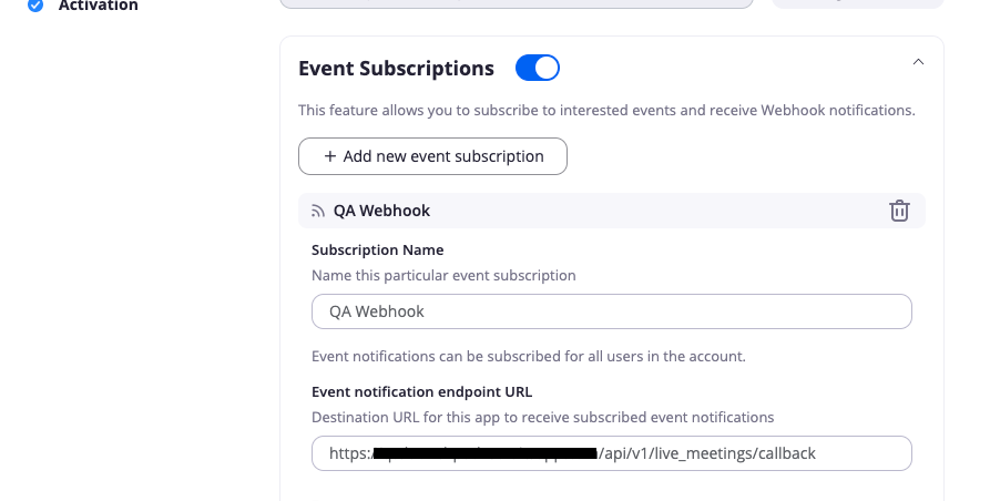 We have a web app that integrates with the Zoom API. Using OAuth credentials. When we went live, we’ve had to change our test server webhook to support recordings on our production server.