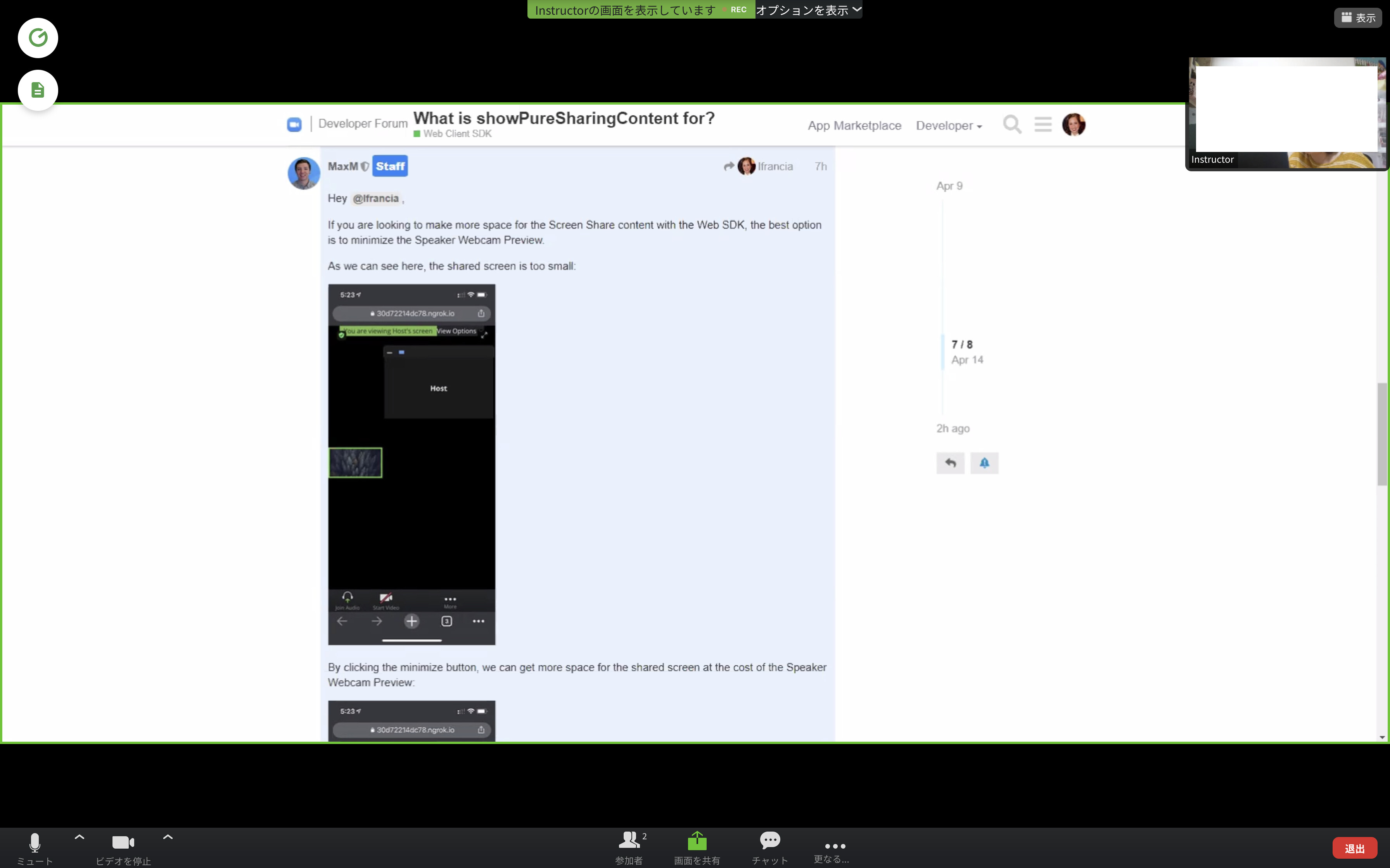 However, I really don’t see any difference between setting showPureSharingContent (tried both on init and showPureSharingContent()) to false and true. When setting it to false, the video thumbnails will be still shown on top of the shared screen content on the receiving side as same when it is set to true.