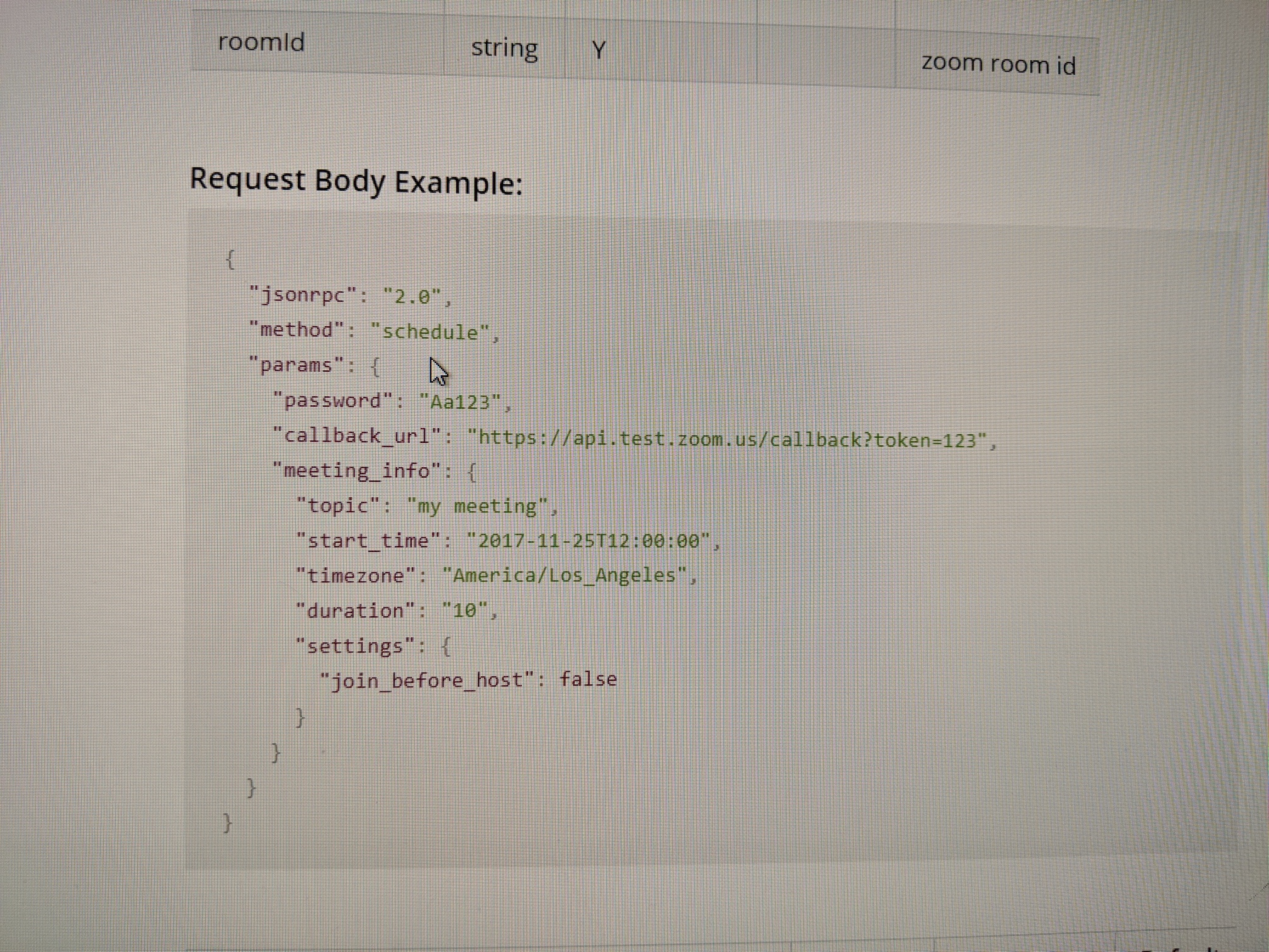 When using the Zoom Room API to schedule a meeting. The “Request Body” sent is…