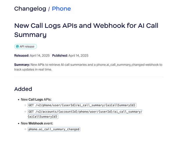 Using the Zoom Phone API, is it possible to get the AI-generated summary and/or call transcript from previous calls?